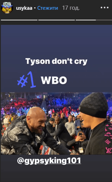 Александр отреагировал на это с юмором, опубликовав в своем Instagram-stories, совместное с британцем фото с надписью: "Тайсон, не плачь".