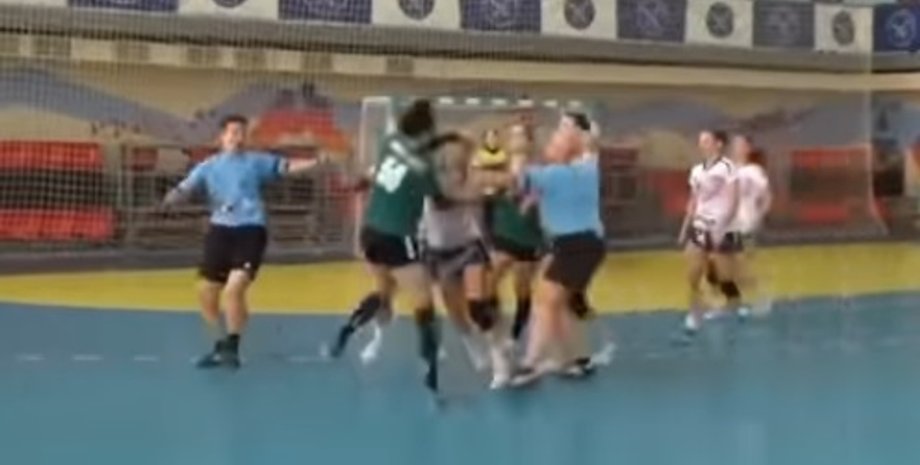 Во время матча регулярного сезона женской суперлиги произошла массовая драка гандоблисток "Днепрянки" и "Реала". Видео опубликовано на YouTube-канале Александра Телиша.