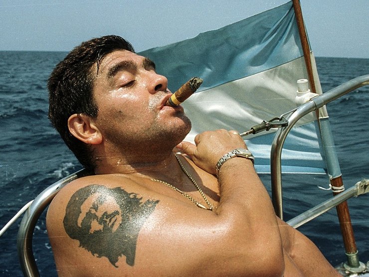 На Острове Свободы Марадона увлекся гольфом и сигарами, а также сделал себе татуировку Че Гевары на правой руке.