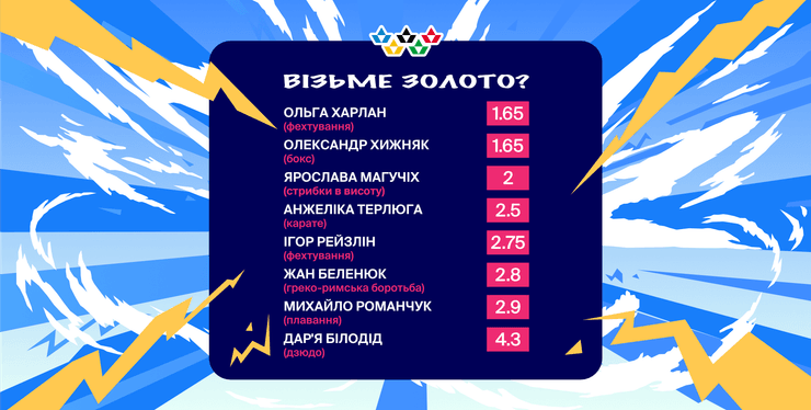 Отметим еще шпажиста Игоря Рейзлина, каратистку Анжелику Тергюгу (карате наконец-то дебютирует на Олимпиаде!), опытнейшую Елену Костевич, бравшую золото в стрельбе из пистолета в далеком 2004 году и, конечно, дзюдоистку Дарью Билодид. FAVBET считает, что Дарья принесет Украине первую медаль Олимпиады уже в эту субботу.