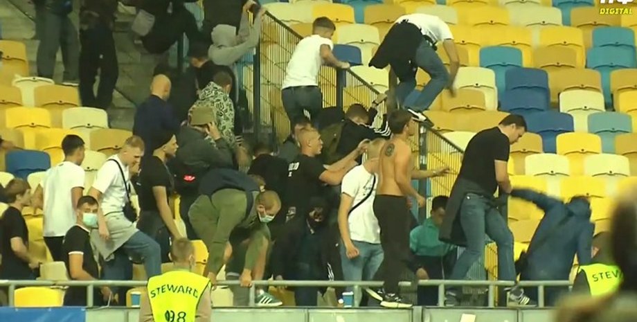 В результате инцидента как минимум один зритель получил травмы — у него разбит нос, сообщает Obozrevatel.