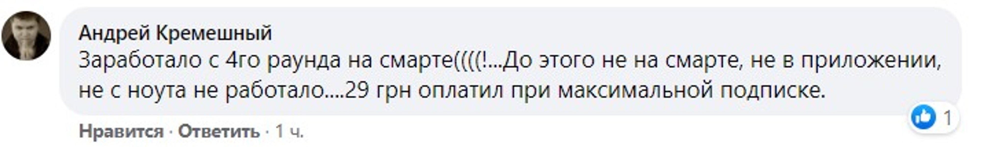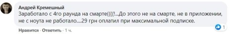 "Я заплатил 129 и да, 2 раза зависало приложение и приходилось перезагружать девайс", "29 грн стоило для тех, у кого там максимальная подписка. У меня, например. Но все заработало только к 4 раунду!", "там прикол другой) из приложения мобильного 4 бакса было, а если с сайта в кабинет заходить — 29 гривен) все для людей 🤣", "Заработало с 4го раунда на смарте((((!…До этого не на смарте, не в приложении, не с ноута не работало….29 грн оплатил при максимальной подписке", – пишут пользователи.