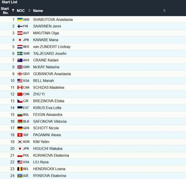 Украинке Анастасии Шаботовой достался первый порядковый номер, россиянка Александра Трусова выйдет на площадку 28-й, Анна Щербакова — 29-й, последней выступит японка Камри Сакамота.