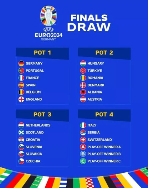 Евро-2024: состоялась жеребьевка финальной части чемпионата по футболу (таблица)