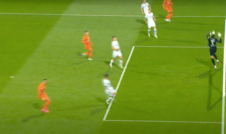 44. После удара Сикана мяч попал в сетку с внешней стороны ворот.