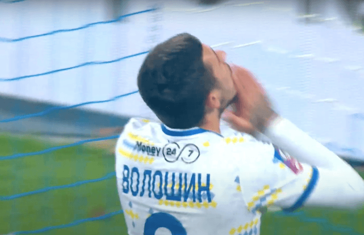 85. Волошин пробил с линии штрафной после подачи углового. Голкипер Ризнык был на месте.