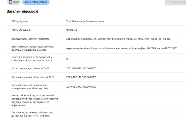 Боксер уже имеет 2 высших образования. Защищать диссертацию Усик планирует в Харьковском национальном университете внутренних дел.
