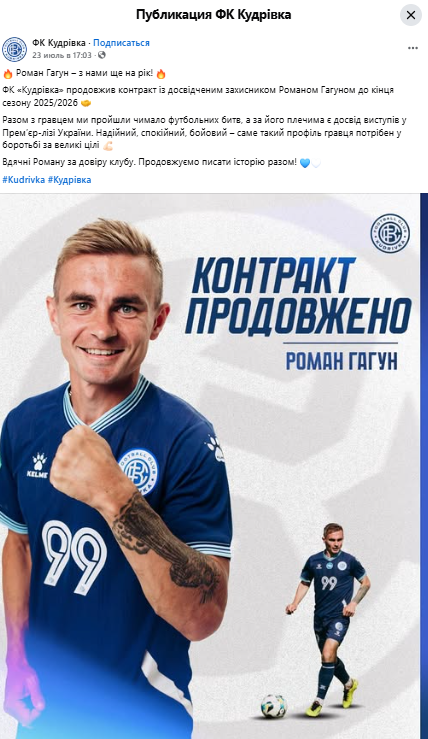 Гагун выступает за "Кудровку" с зимы 2024 года, куда он перешел из ровненского "Вереса".