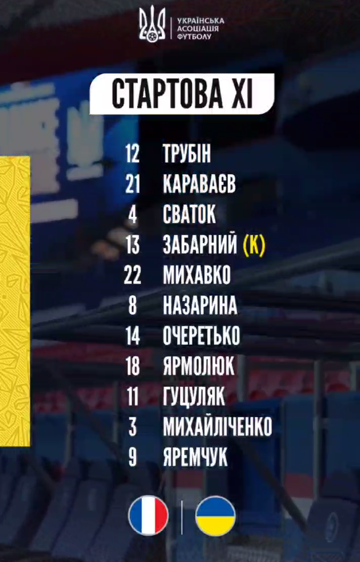 Стали известны 11 игроков, которые попали в стартовый состав сборной Украины.