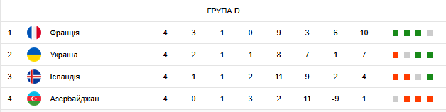 Команда Реброва гарантирует место в первой двойке в случае победы над французами и потери очков Исландией в игре с Азербайджаном. Также шанс сохраняется, если Украина сыграет вничью, а Исландия проиграет.