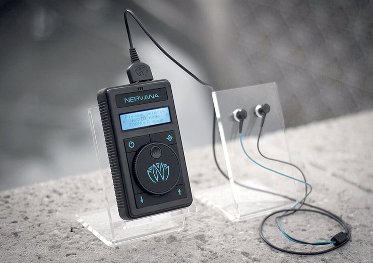 Nervana — это генератор импульсов, работа которого синхронизирована с музыкой из смартфона или другой аудиосистемы, а выходной сигнал поступает на электроды, размещенные на внутриканальных наушниках. По утверждениям разработчиков, таким образом стимулируется блуждающий нерв, что, в свою очередь, приводит к выработке дофамина, вызывающего "чувство удовлетворения" — и все это всего за $300. Впрочем, гаджет, скорее всего, не пройдет медицинскую регистрацию. Поскольку в отличие от остальных нейростимуляторов, влияние которых ограничивается мышцами, претендует на вмешательство в гормональный обмен.
