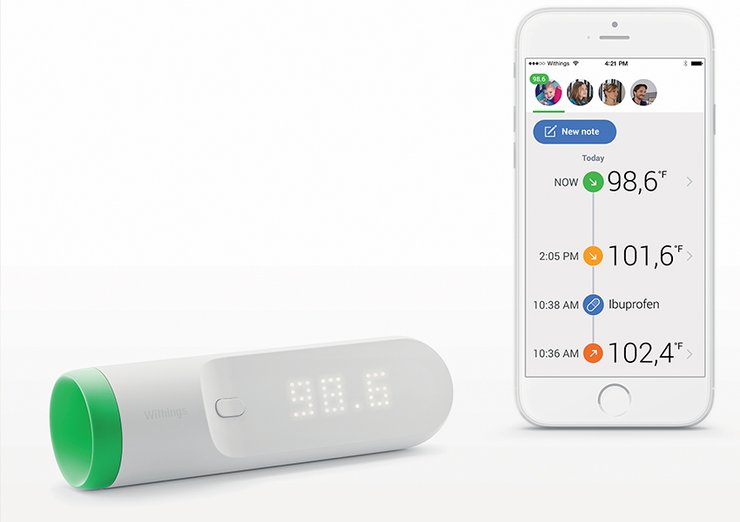 Этот умный термометр способен с высокой точностью измерить температуру — для этого его достаточно прижать к виску всего на пару секунд. Одновременно с помощью гаджета можно измерить артериальное давление, связаться со смартфоном по Wi-Fi или Bluetooth, записать данные в журнал наблюдений или даже отправить врачу. В общем, единственный минус лишь в том, что стоит новинка от $100 и явно не выдержит конкуренции с обычными цифровыми градусниками, которые дешевле на порядок. Не говоря уже о ртутных термометрах, чья стоимость меньше примерно в 100 раз.