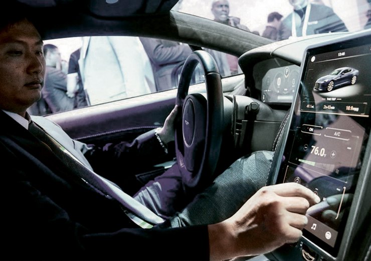 Еще одна революционная новинка CES — концепт Aston Martin, в интерьере которого не нашлось места физическим кнопкам. Все управление этим автомобилем сосредоточено в меню 13,3-дюймовой сенсорной панели, установленной на центральной консоли. Впрочем, система оказалась настолько революционной, что о появлении ее на рынке в этом году речь не идет. После "сдержанной реакции" посетителей выставки этот концепт вообще может не пойти в серию.