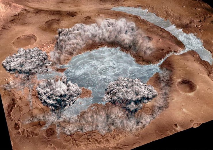 О том, что на Марсе есть лед, было известно давно, а вот поиски жидкой воды долгое время оказывались тщетными. Но в сентябре прошлого года представители NASA сообщили: по поверхности Красной планеты текут целые ручьи. Они, по всей видимости, насыщены солями хлорной кислоты и для большинства земных организмов ядовиты, так что будущим колонизаторам вряд ли удастся напиться из марсианских рек. Но возможность использовать очищенную марсианскую воду для будущих колоний не исключается.