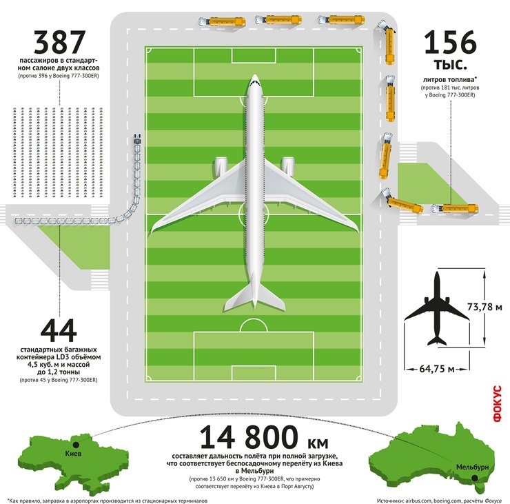 В Airbus не скрывают, что самолет предназначен для того, чтобы "разрушить монополию" заокеанского конкурента — Boeing 777-300ER, который эксплуатируется с 2013 года.