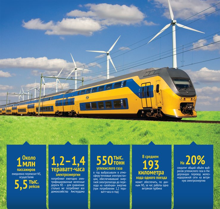 Крупнейший пассажирский железнодорожный перевозчик Нидерландов — Nederlandse Spoorwegen — первым в мире перевел свои железные дороги на энергию ветра