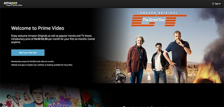 В декабре 2016-го в Украину зашел еще один международный игрок — Amazon Prime Video. Здесь можно смотреть популярные фильмы и сериалы по подписке. Первые полгода для украинских пользователей сервис будет стоить 2,99 евро в месяц, по окончании этого периода цена возрастет до 5,99 евро в месяц. Новым подписчикам Amazon Prime Video предлагает 7 дней бесплатного пользования.