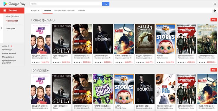 Не так давно для Украины стали доступны фильмы в Google Play. Выбор фильмов не очень большой, с переводом на русский язык — и того меньше, в некоторых лентах доступны субтитры на русском.