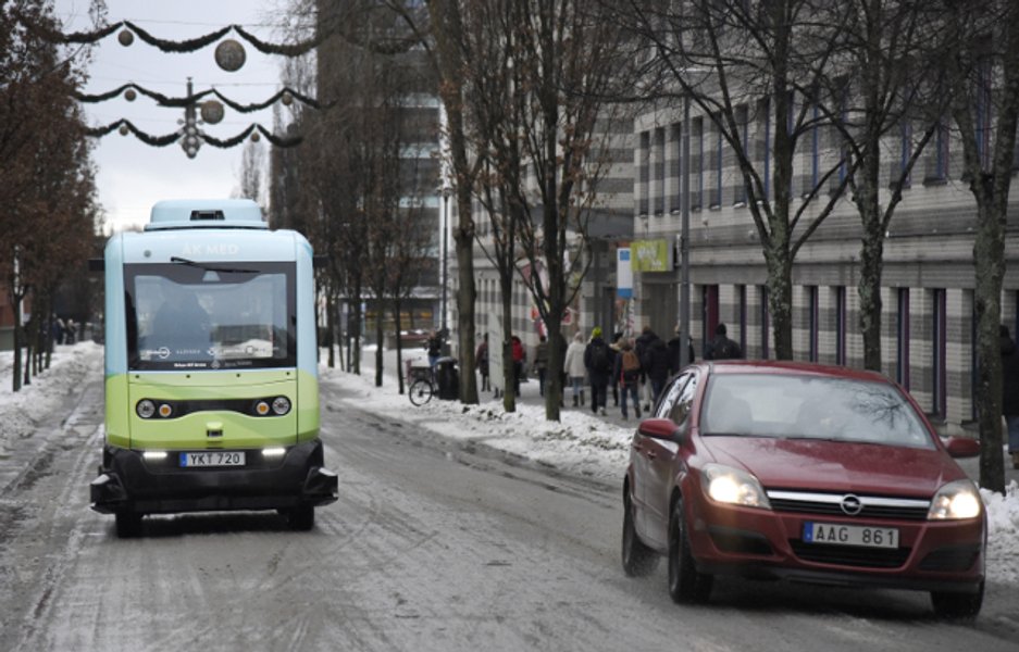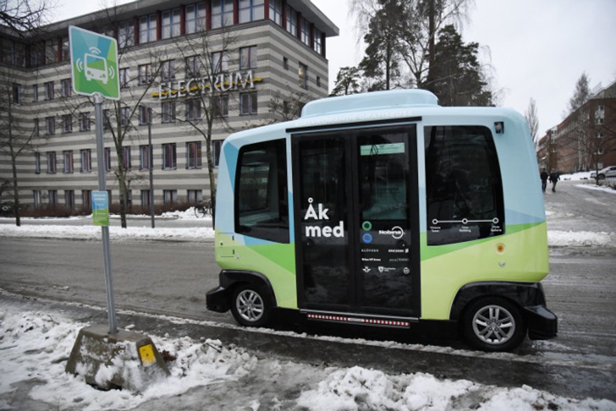 Два автобуса теперь курсируют между торговым центром Kista и Victoria Tower по предварительно записанному маршруту длиной 1,5 км со скоростью 20 км/ч, с помощью GPS и датчиков.