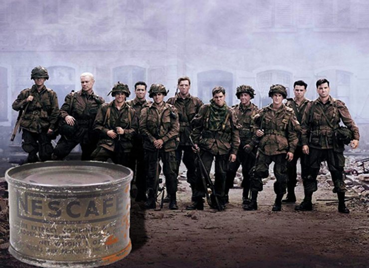 У растворимого кофе много изобретателей, однако своей популяризации он обязан американцу бельгийского происхождения Джорджу Вашингтону. Он изобрел технологию дегидратации, адаптированную для массового производства. В 1910 году Вашингтон основал компанию по производству растворимого кофе, однако продукт не пользовался спросом. Но предприниматель смог стать поставщиком канадского и американского экспедиционных корпусов во время Первой мировой войны. Благодаря этому он в шесть раз увеличил производство и поправил свои дела. Успехом растворимый кофе пользовался и во Второй мировой, но в тот период кроме Джоржа Вашингтона поставщиком американской армии была и компания Nestle, основанная в 1938 году.