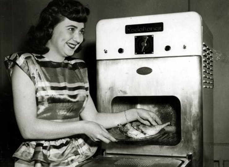 Микроволновки — побочный эффект военной радиолокации. Радарами на основе этой технологии активно пользовались во время Второй мировой войны, чтобы засекать вражеские корабли и самолеты. Способность радиоволн нагревать еду обнаружилась случайно. В 1946 году один из сотрудников компании Raytheon, подрядчика американской армии, проводил эксперименты с радиоволнами и обнаружил, что конфета в его кармане расплавилась. В том же году компания подала заявку на патент микроволновки, а в 1954 году начала их коммерческий выпуск. Первые микроволновки были размером с холодильник.