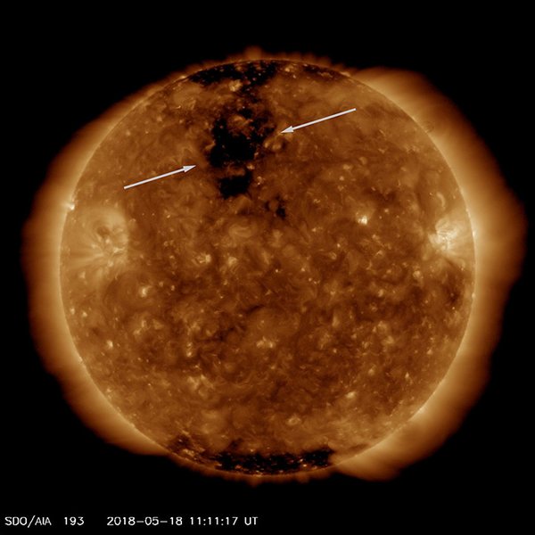 Под корональными дырами понимают более темные области солнечной короны с повышенной скоростью солнечного ветра. Их пониженная яркость объясняется массовым уходом плазмы в межпланетное пространство. Выброшенная плазма образует поток, способный при контакте с Землей вызывать заметные возмущения ее магнитного поля.