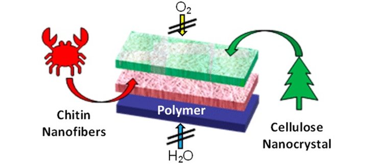 Суспензию из нановолокон хитина и нанокристаллов целлюлозы исследователи нанесли на основу из полилактида и дали высохнуть, в результате получилась прозрачная пленка.
