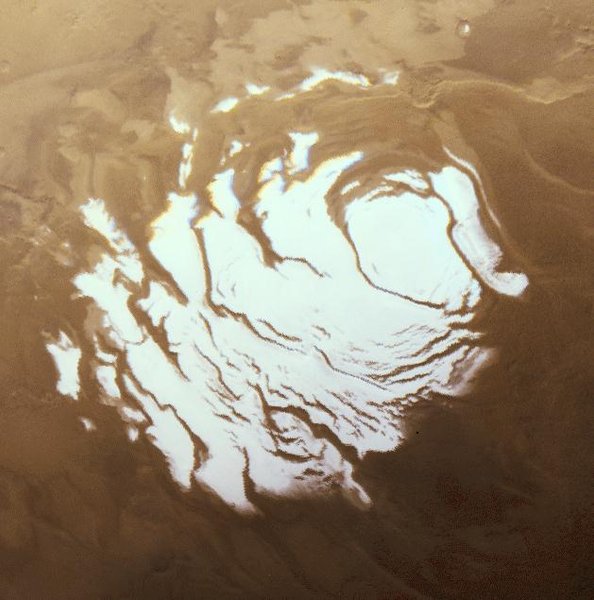 Кажется, что на фото изображена поверхность воды, но это южная полярная шапка Марса