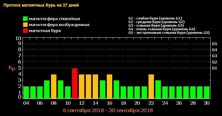 Также возбуждения магнитосферы ожидаются 8, с 11 по 14, 16 и 22 сентября. В другие дни магнитосфера Земли будет спокойной.