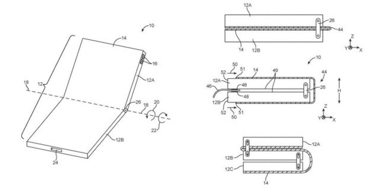 Исходя из опубликованных чертежей, гаджет сможет сгибаться в обе стороны.