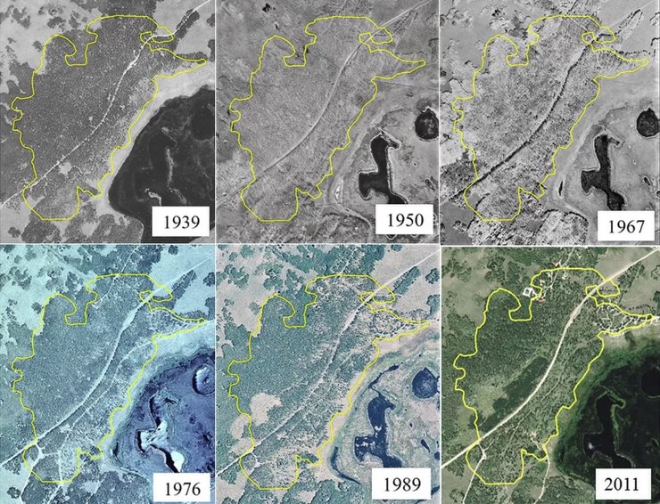 Ученые сравнили аэрофотоснимки леса за последние 80 лет и обнаружили, что он редеет. Еще в 1939 году он был густым, а с 1970 года между деревьями появляется все больше просветов. Это означает, что старые стебли умирают, а новые им на смену не вырастают.