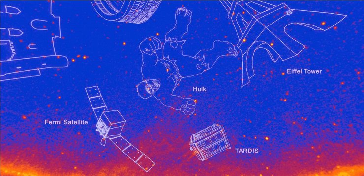В честь десятилетнего юбилея космического гамма-телескопа Fermi сотрудники NASA создали "неофициальную" карту созвездий, где вместо обычных звезд - источники гамма-излучения. Об этом сообщается на сайте NASA.