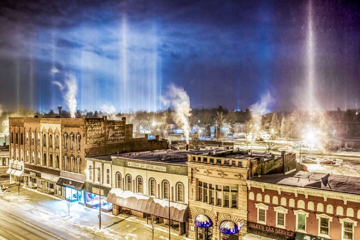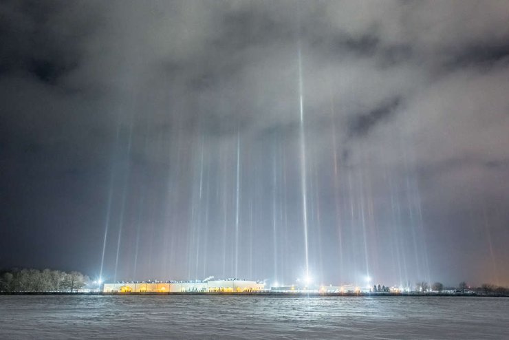 Фотограф Винсент Брэди опубликовал снимки редкого и красивого природного явления, известного как световые столбы. Об этом сообщается на сайте NASA.