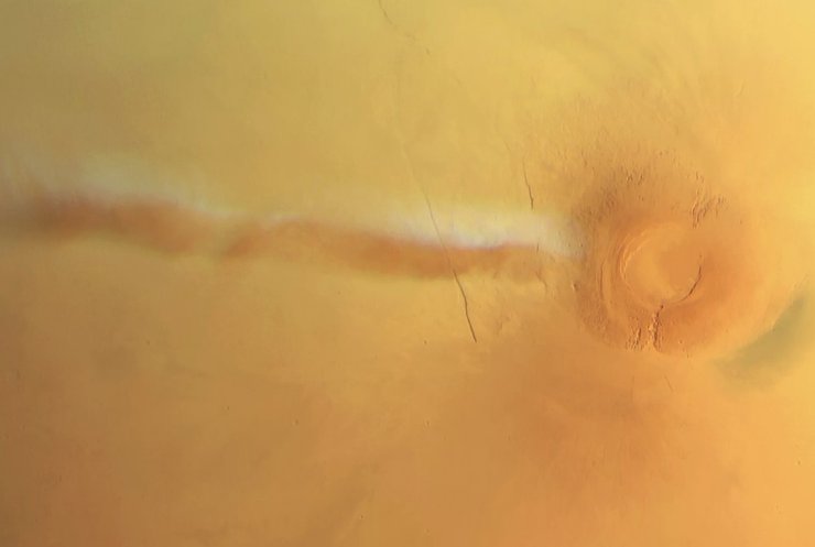 Хотя горные облака распространены на Марсе, это облако интересно. Во-первых, оно не рассеялось за более чем 2 месяца, во вторых, его длина – 1500 километров – действительно впечатляет.