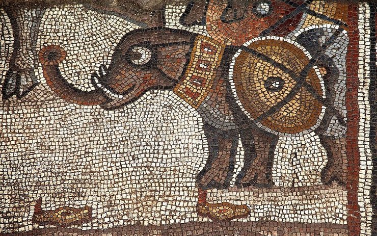Лучше всего сохранилась мозаика с боевыми слонами. По мнению ученых, это изображение не имеет библейского контекста и является частью какой-то исторической сцены.