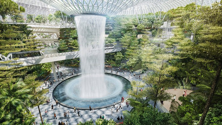 Каменные джунгли. Так будет выглядеть новый парк с 40-метровым водопадом в аэропорту Сингапура