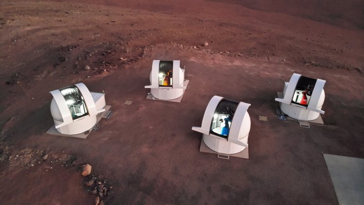 Телескопы названы в честь четырех галилеевых лун Юпитера — Ио, Европы, Ганимеда и Каллисто. Они установлены на горе Параналь в Чили.