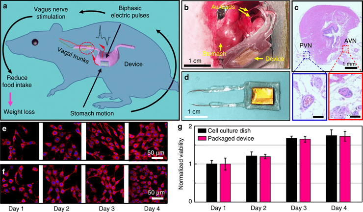 Ученые из США и Китая разработали датчик, который крепится на стенку желудка и отслеживает его сокращения, передавая сигнал о насыщении через блуждающий нерв в мозг. Исследование опубликовано в Nature.