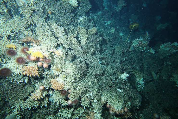 К югу от Тасмании ученые нашли новые участки глубоководного кораллового рифа и более 100 ранее неизвестных глубоководных видов в том числе кораллов, омаров и моллюсков, пишет Marine Biodiversity Hub.