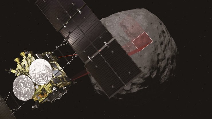 Первым оказался зонд "Хаябуса-2", запущенный японским космическим агентством JAXA еще в 2014-м году. В июне он прибыл к месту назначения – астероиду Рюгу. За минувшие месяцы он успел прислать с места работы ряд снимков, и даже видеоролик. По предварительным планам зонд пробудет у астероида до конца следующего года и соберет образцы как с поверхности небесного тела, так и из-под нее. Для этого он выстрелит по Рюгу снарядом, а материал возьмет из образовавшегося кратера. Доставить полученные образцы на Землю " Хаябуса-2" должен к концу 2020-го.