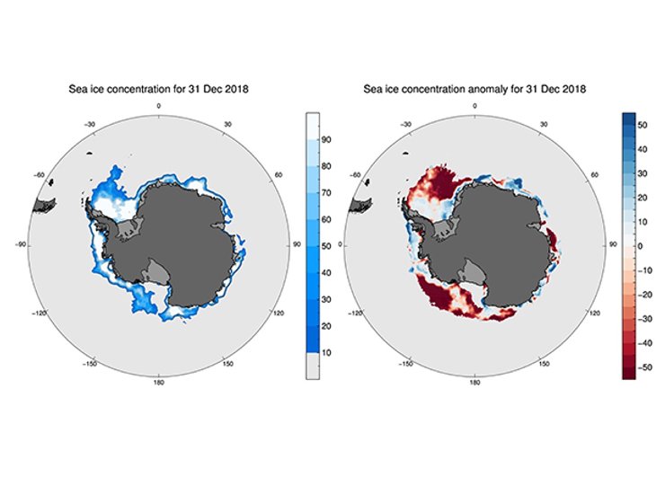Площадь антарктического морского льда к 1 января 2019 года снизилась до 5,47 миллиона квадратных километров. Это самое низкое значение за все 40 лет спутниковых наблюдений, сообщает Национальный центр информации по снегу и льду США (NSIDC).