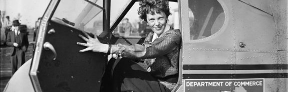 Амелия Эрхарт - основательница международной организации женщин-пилотов "Девяносто девять", первая женщина-пилот, перелетевшая Атлантику и США от побережья до побережья (1932 год). Также она могла бы стать первой женщиной, совершившей кругосветное авиапутешествие, однако в конце маршрута пропала при загадочных обстоятельствах вместе со своим штурманов Фредом Нунаном.