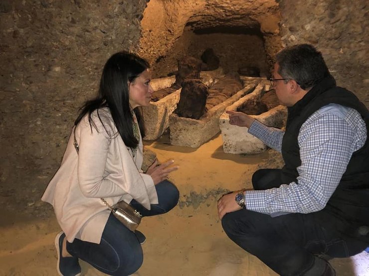 Интересно, что мумиии захоронены по-разному: некоторые - в деревянных и каменных саркофагах, другие - в каменных нишах гробницы или прямо на полу.