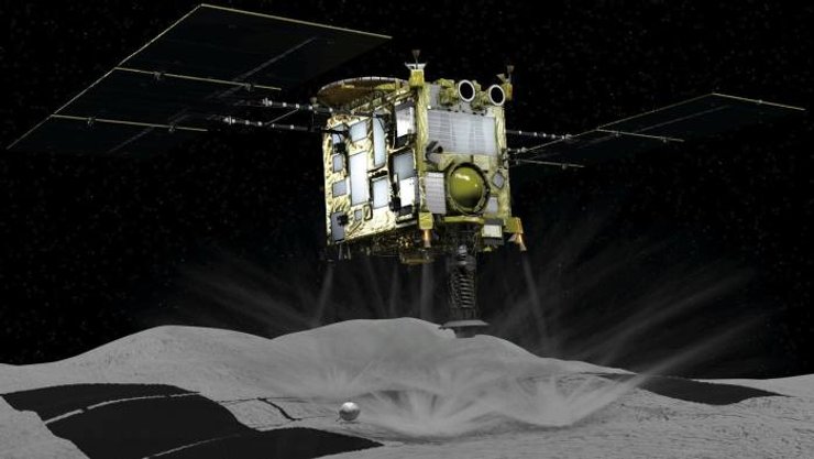Японский межпланетный зонд Хаябуса-2 выстрелил в астероид Рюгу пятиграммовой пулей и собрал взметнувшуюся пыль, совершив короткую посадку на поверхность. Сейчас зонд уже вернулся на прежнюю рабочую 20-километровую орбиту, пишет The Guardian.