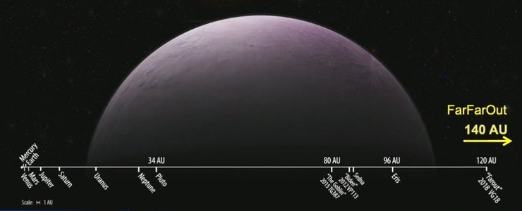 Изучив снимки окраин Солнечной системы, пришел к выводу, что на расстоянии 140 астрономических единиц от Солнца (то есть в 140 раз дальше, чем наша планета) должен быть некий объект. Его назвали FarFarOut ("очень-очень далекий"). Ни размеры, ни орбиты объекта пока неизвестны - на их определение может уйти несколько лет.