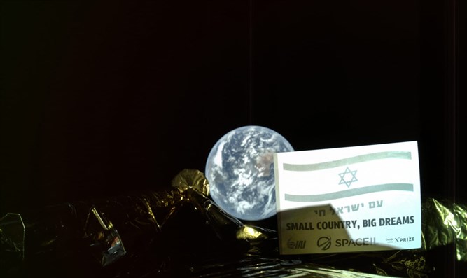 Фотография сделана с околоземной орбиты на расстоянии 38 000 километров от Земли. Помимо земного шара, на ней видны элементы самого зонда и табличка с надписями "Маленькая страна, большие мечты" на английском языке и "Народ Израиля жив" на иврите.