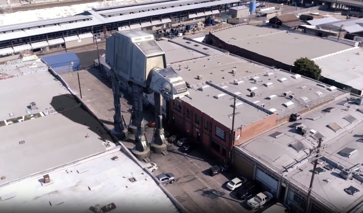 А тяжелый шагающий транспорт AT-AT (All Terrain Armored Transport — вездеходный бронированный транспорт) кажется не очень большим, если поставить его рядом с земными зданиями, но вполне может раздавить автомобиль, если наступит на него.