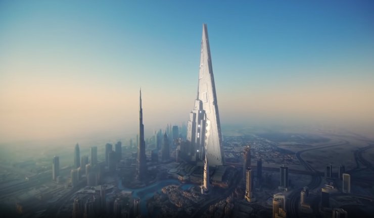 А "Звездный разрушитель", военный космический корабль, если поставить его рядом с Бурдж-Халифа в Дубаи, окажется намного ее выше.