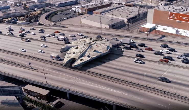 А вот "Тысячелетний сокол" Хана Соло вполне сопоставимых размеров, он почти такой в длину, как и аваилайнер Boeing 737.
