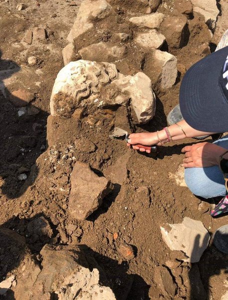 "Мы вели раскопки, разбирали стену, когда внезапно увидели завитки волос. Очищенный от земли, от предстал перед нами во всей красе", - рассказали ученые.